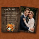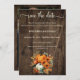 Esta placa Save the Date apresenta um design de queda rústico com uma variedade de bombas de queda contra um fundo de madeira. O convite é feito de estoque de cartão de alta qualidade e vem com um envelope correspondente. É certo que dá uma impressão duradoura aos seus convidados. O convite é perfeito para o seu casamento outono/celeiro de outono. Você pode colocar sua foto favorita atrás para aquele toque especial extra.