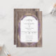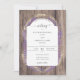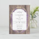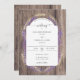 Uma estrutura floral e botânica rústica, feita de lavanda e trigo, faz uma bela ilustração, pintada à mão em aquarela digital, para decorar este convite elegante de casamento rústico que também apresenta um fundo de conselho de madeira. Romântico e charmoso, é uma escolha encantadora para um casamento de celeiro, um casamento ao ar livre, um casamento de jardim ou qualquer lugar rústico.