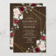 Bonito e rústico, este design de convite para o casamento apresenta uma geometria falsa de ouro embelezada com belos rosas, botões e eucaliptos de cor d'água, sobre um fundo de madeira de celeiro. Entre em contato com o designer para produtos correspondentes. Copyright Elegant Invites, todos os direitos reservados.