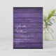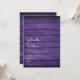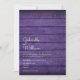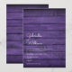 Convite de casamento rústico simples com os nomes do casal feliz em uma elegante caligrafia acima dos detalhes especiais do casamento em um fundo de madeira rústica. O verso apresenta um fundo de madeira roxa rústica correspondente. Projetado por Thisisnotme