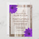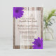 Um convite de casamento com o tema do país, com madeira de celeiro rústico e margaridas roxas. Personalize facilmente o seu evento!