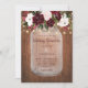 Perfeito para casamentos de vassoura no interior do país, esses convites florais rústicos apresentam um buquê de flores de burgundy e blush em cima de um pote de mason com o importante dentro de texto. As luzes de cordas decoram o topo do design, com um fundo de madeira rústico.