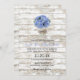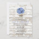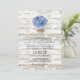 Blue Hydrangea Floral Jar Rustic White Wood Wedding Convites.