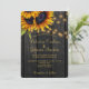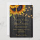 Elegante verão chic ou na moda de casamento outono de convite modelo em madeira marrom-escura apresentando um belo buquê de girassóis e cordas ou luzes cintilantes. +++++++++++++++ Personalize-o com os seus detalhes no lado frontal e com a sua fotografia no sentido inverso. +++++++++++++ O convite é adequado para os casamentos elegantes no Verão ou outono no país russo.