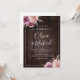 Design floral botânico de cor aquosa em roxo mauve, amoreira, rosa poeirento e cor de pêssego em fundo de madeira de celeiro escuro, com roteiro e texto modernos, elegante e na moda, convites para casamento de excelente para casamento botânico no outono e no inverno. Veja todas as peças correspondentes na coleção.