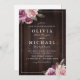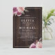 Design floral botânico de cor aquosa em roxo mauve, amoreira, rosa poeirento e cor de pêssego em fundo de madeira de celeiro escuro, elegante e na moda, convites para casamento de excelente para casamento botânico no outono e no inverno. Veja todas as peças correspondentes na coleção.