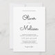 Este convite de casamento preto e branco minimalista apresenta um roteiro chico e elegante para os nomes com texto de tipografia mínima para as outras informações do convite, que enfatiza o nome da noiva e do noivo. Um convite perfeito para criar um olhar sofisticado para o seu casamento. Muito fácil e simples de personalizar!