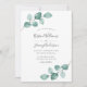 Este convite de casamento moderno apresenta imagens pintadas à mão de água de eucalipto verde. Personalize com seus detalhes de casamento em tipografia de roteiro preto. Os melhores votos para o seu casamento e casamento! Projetada por Susan Coffey.