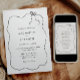 Convide seus convidados para seu dia especial com este convite de casamento inspirado na coquete minimalista, misturando elegância do eterno com um charme delicado. Com uma fita desenhada graciosamente à mão e uma borda de arco, a design exumenta uma sutil feminilidade e sofisticação. A tipografia limpa e moderna destaca os nomes dos casais em letras maiúsculas em negrito, criando um foco impressionante contra o esquema de cores preto e branco subestimado. Perfeito para um tema romântico e clássico de casamento, este convite capta uma estética coquete com seus detalhes graciosos e na moda. Personalizável para incluir as informações exclusivas de seu evento, ele define lindamente o tom para uma celebração inesquecível.