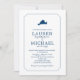 Este Anúncio de Convite de Casamento apresenta um mapa azul marinho sólido do Vineyard de Martha, centrado no topo. Uma elegante, mas moderna, borda de joias enquadra seu convite. Fundo branco e um azul Marinho sólido na parte traseira da placa. Um design clássico tradicional para um caso elegante. Para obter informações sobre alterações de design personalizadas pelo designer independente, envie um email para paula@labellarue.com ANTES de personalizar ou fazer um pedido.