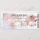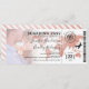 Bilhete de casamento de passagem de embarque com uma foto do casal feliz, um mapa do mundo de destino de folha de ouro, bússola, avião e um modelo de casamento personalizado.
