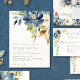 Convites Casamento de Marfim Azul Floral Moderno com Queda