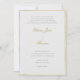 Um modelo de convite de casamento de quadro de ouro simples, mas sofisticado, eterno e elegante. O esquema de cores é desenhado a partir de vários tons de ouro, dando-lhe um brilho suave de cor. Personalize cada linha de texto para um clássico moderno com ouro, floresce a caligrafia moderna que é perfeita para um evento formal.