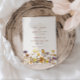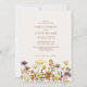 Celebre o seu amor com este convite de casamento elegante e minimalista, com flores silvestres pintadas manualmente em tons ricos de outono de cor roxa, laranja queimada, amarelo e verde. Contra um fundo de creme de marfim mole, a escrita moderna do terracota acrescenta um toque contemporâneo. Perfeito para casamentos de jardim de vassoura, cerimônias de chic rústicas, ou celebrações de outono, esta design captura a essência da beleza da natureza.