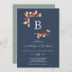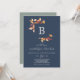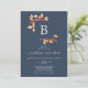 Este outono deixa marinho azul e o convite para o casamento de monograma é perfeito para um casamento de outubro. A design rusticidade moderna apresenta uma mão espantosa pintada de folhas de outono de aquarela em tons coloridos de amarelo, laranja queimado e vermelho queimado que pop sobre um fundo azul marinho. Personalize o cartão com seu último monograma inicial.