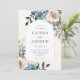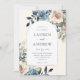 Este elegante convite de casamento floral de aquarela apresenta um falso quadro de arco prateado e letra de caligrafia. As flores impermeáveis pintadas manualmente em azul-marinho rústico e cores creme são perfeitas para uma queda ou casamento no inverno. Edite este convite usando as ferramentas de modelo on-line do Zazzle. Designs são ilustrações/gráficos impressos planos - NÃO FOIL REAL.