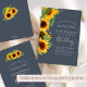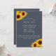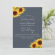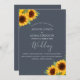Convite para casamento de girassol azul marinho - Este convite para o casamento de girassol apresenta um fundo azul marinho impressionante com florescentes amarelos brilhantes para uma vibração rústica de vassoura. Ideal para casamentos outono, celeiros ou casais que buscam uma estética floral ousada com elegância country.