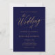 Convites Casamento de Marinho de Caligrafia Dourada com Cód
