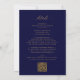 Tudo em um Elegante Marinho de Caligrafia Dourada Convite de Casamento Azul com Detalhes no Fundo... Nosso convite de casamento exclusivo de ouro e marinho apresenta caligrafia elegante de manuscrito em ouro combinado com texto de serifa para um convite de casamento clássico e elegante. A parte traseira do convite contém todos os detalhes que você normalmente veria em cartões separados no pacote de casamento, incluindo tempo e local de recepção, opções de alojamento, site de casamento, RSVP e informações de registro de presentes. Este convite de casamento ao estilo moderno foi concebido para ser elegante e consciente do orçamento... para não mencionar a poupança de tempo para as famosas noivas. No verso há também um exemplo de modelo gráfico de código QR que você pode substituir por seu próprio código no modelo de personalização, digitando apenas o URL do seu site de casamento. Todo o texto de exemplo (além dos elementos de caligrafia gráfica) pode ser facilmente revisado com suas próprias informações sobre o mesmo modelo de personalização.