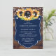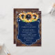 Estes convites para casamento florais azuis de marinho são ideais para uma festa de casamento rústica inspirada pelos girassóis.