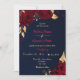 elegantes flores burgundy de luxo com algumas folhas de ouro convite ao casamento azul de marinho Os detalhes de brilho são simulados
