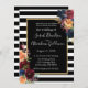 Este convite de casamento espetacular e impressionante apresenta riscas brancas e pretas ousadas com marinho azul-de-trim de ouro, vinho vermelho-burgundy e flores e rosas de ouro amarelas. As flores realmente pop e cantam maravilhosamente neste belo convite para o casamento.