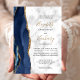 A borda esquerda deste elegante convite de casamento moderno apresenta um marinho azul de aquarela agata borda aparada com falso brilho dourado. O texto personalizável combina manuscrito dourado com fontes em preto e em itálico em fundo branco e cinza. O verso apresenta um design de agate azul e dourado correspondente.