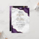 Uma design de aquarela púrpura, aparada com brilho de ouro falso, aparece em dois cantos deste design elegante. Personalize-o com os nomes dos casais em um guião de escrita manual dourada sobre uma grande e grande cinza. Adicione os detalhes do casamento em placas pretas e fontes itálicas em uma cinza e fundo de mármore branco. O verso apresenta um design de agate roxo e dourado correspondente.