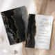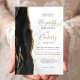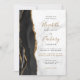 A borda esquerda deste elegante convite de casamento moderno apresenta uma coloração aquosa preta, borda agitada, aparada com falso brilho dourado. O texto personalizável combina um script de manuscrito dourado com fontes em preto e itálico em uma cinza e fundo de mármore branco. O verso apresenta um design de agate preto e dourado correspondente.