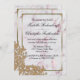 Um convite de casamento mais elegante, esse anúncio chic tem um padrão de mármore rosa e branco com os detalhes personalizados fechados por um ouro decorativo, quadro metálico. No canto inferior está um embelezamento de um lugar floral de ouro (por favor note, tudo apenas impresso) com pequenas pérolas de ouro embutidas para lhe dar aquele toque extra de luxo e estilo. As pequenas pérolas também estão nos cantos do quadro do ouro, e no reverso do cartão estão monogramas personalizados para a noiva e o noivo com pequenas pérolas embutidas no monograma.
