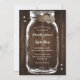 Este convite para o casamento de Mason jar rústico com um jarro de mason e dois corações de burlap em um fundo de madeira de celeiro é perfeito para convidar seus convidados para a festa de casamento do país rústico. Personalize facilmente este cartão com os seus detalhes de casamento online. design personalizável a 100%.