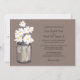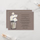 Perfeito para um casamento no estilo country ou talvez você apenas ame Mason Jars! A velha vintagem Mason Jar encheu-se de margaridas brancas contra um fundo Brown. Se você tiver alguma dúvida sobre este design ou quiser uma mudança de cor, envie um e-mail para mim paula@labellarue.com Além disso, verifique se os Cartões SENTADOS RSVP, RECEPÇÃO e CONVIDADO correspondem!