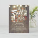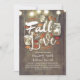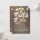 Lâmpadas de cordas, jarras de pedras, folhas de queda, trigo, madeira de celeiro, a incrível queda em convites para casamento
