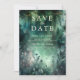 Uma ilustração com aquarela esbranquiçada da folhagem esmagadora em verde esmeralda, cintilante com luzes de fadas e poeira mágica, decora esse casamento outono de verão primavera, salvando o convite de data com um tema de floresta encantado. Um elegante e moderno salvará a data para um casamento de conto de fadas. Perfeito para noivas que amam o cenário da floresta de conto de fadas, o tema da floresta de fadas ou do jardim de fadas e verde esmeralda com um toque de roxo lavanda.