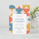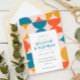 Entra num mundo de nostalgia e celebra o amor num estilo verdadeiramente groovy com os nossos Anos setenta Convite para Papel Retro-Casamento vintage! Este convite apresenta um padrão cativante inspirado pelo espírito vibrante dos anos 1970 e 1960 que combina meio círculo e vieiras. O padrão é elegantemente trabalhado numa paleta de azul, laranja e amarelo, colocada sobre um fundo clássico de náutica, criando um equilíbrio perfeito entre nostalgia e elegância. Placa inversa em azul profundo correspondente. Muito fácil de personalizar: adicione o nome do seu convidado e os detalhes do cheio usando o modelo.