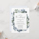 Convite de Casamento de Vestígio Azul Dusty Floral Greenery Este convite de casamento é elegante. Este design apresenta flores macios pintadas à mão, lindas caligrafias e tipografia clássica. Avise-me se quiser coordenar os itens do casamento. Estou sempre feliz em design-los para você.