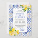 Elegante Aquarela azulejos mediterrânicos azuis e laranja e limões sicilianos design