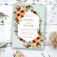 Design de convite de casamento de Boho com lindas flores de aquarela e folhas em fundo verde de menta.