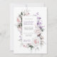 Delicar rosas cor-de-rosa pinceladas e flores silvestres roxas com folhas verdes escuras e roxas e caules rodeiam uma armação segurando seus detalhes de casamento. A parte de trás do cartão é roxo empoeirado. Os modelos de texto são fáceis de personalizar usando texto de caligrafia de ornamentado e uma fonte moderna. Se você quiser esta design em outro produto, ou precisar de ajuda de alguma forma, por favor, entre em contato comigo através da minha loja.