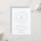 Moldura azul-poeirenta moderna, convite para casamento. Estilo de design minimalista com texto de cor azul empoeirado correspondente. A parte traseira da placa apresenta cor azul estável e empoeirada.
