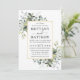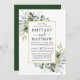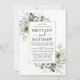 O Cartão de Convite para Casamento de Cores Biológicas Elegantes Modernos inclui folhas de eucalipto, folhagem botânica verde, folhas azuis empoeiradas e outros belos lençóis botânicos. Quadro Dourado, Fundo Verde
