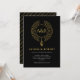 Este elegante e sofisticado convite para o casamento é um design contemporâneo, com as iniciais do casal apresentadas elegantemente em na moda, cercado por uma única formação escultural de círculos concêntricos, que lembra um corante de arame. O convite é ainda embelezado por um sotaque de folha posicionado no centro inferior, com um acabamento de ouro luxuoso. Para adicionar mais um toque de refinamento, o verso do convite apresenta os nomes dos casais exibidos em um padrão diagonal em ouro contra fundo preto. Este convite vai certamente impressionar os seus convidados com o seu design moderno, mas eterno.