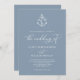 Este elegante design de convite náutico azul, empoeirado, apresenta um monograma de âncora no topo, com caligrafia de guião. Encontre produtos correspondentes na coleção, ou envie-me mensagem através do Zazzle Chat para mais produtos, variações de cor ou outros ajustes de design.