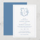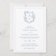 Um convite de casamento azul vibrante para monograma da crista formal e elegante.