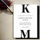 Cartão de Convite para Casamento de Monograma Moderno Negro e Branco. Celebre o seu dia especial com esta elegante e bela carta de convite para casamento para embelezar a sua ocasião especial. Todos os textos estão pré-organizados para que você personalize fácil e rapidamente com seus próprios detalhes. Se você precisar de mais itens de personalização ou de correspondência, envie um e-mail para alldaybreakfastzazzle@gmail.com - gostaríamos de ajudar.