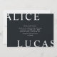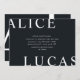 Nossa coleção do "Ultra Modern Wedding" apresenta monogramas de tamanho excessivo em uma fonte serif que transbordam no topo e no fundo em conjunto com um roteiro moderno para todas as outras informações. Você pode escolher entre diferentes cores de fundo e fonte e personalizar facilmente os produtos. Verifique em nossa loja mais itens desta coleção.