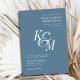 Convites Casamento de Monograma Clássico Elegante Azul Dust