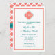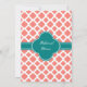 Coral, cor-de-rosa monograma, e padrão quatrefoil de cor-de-coleira. Realizar convites para janto.
