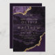 O moderno cartão de casamento escuro, Purple, com pó de ouro ativado com um efeito de derrame de tinta dourada (o ouro é um efeito digital, não uma folha de papel real!) e a caligrafia moderna. Clássico e elegante, simples e moderno convite.