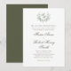 Elevem seu dia especial com este convite elegante de casamento verde que inclui um roteiro clássico de caligrafia e tipografia tradicional. Concebido com uma redação formal e uma fronteira mínima clássica, este convite incorpora uma elegância simplista. A estética maleável e romântica é complementada por um monograma mínimo que mostra uma design inicial monograma e por uma ampola. Perfeito para casais que buscam um simples, mas sofisticado olhar para sua celebração formal de casamento.